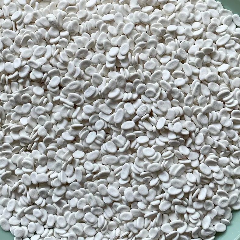 1. Fácil de usar: Masterbatch retardante de llama se presenta principalmente en forma de gránulos del tamaño de láminas o tiras, que son exactamente del mismo tamaño que los gránulos de plástico generales. Esto mejora su compatibilidad mutua, haciéndolos más fáciles de dispersar y agregar, higiénicos y reduciendo los desechos volátiles.
